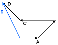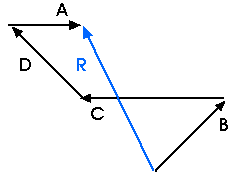 R = B + C + D + A We still end up at the same spot. The resultant is independent of the order in which we add the vectors.
