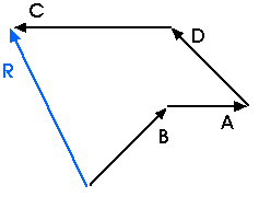 R = A + B + C + D The resultant vector R locates where we end up after following these directions in this order. As we will see, this resultant is