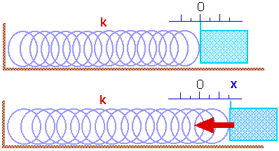 We might write this in equation form as F = k x. However, the force exerted by the spring is always in the opposite direction to the stretch (or compression) of the spring. This proportanity is known asHooke's law and can be written as