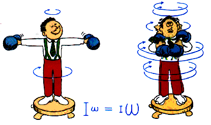 Like linear momentum, angular momentum is important -- and interesting! -- because angular momentum is conserved! That means the value of the angular momentum remains constant. We can often change the "rotational mass" or the "moment of inertia". This will cause the angular velocity