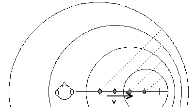 where f' is the frequency that is heard with a moving source (or observer), f is the frequency heard with source and observer at rest, v is the speed of sound, vobs is the speed of the observer, and vsource is the speed of the source.