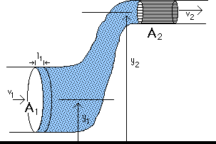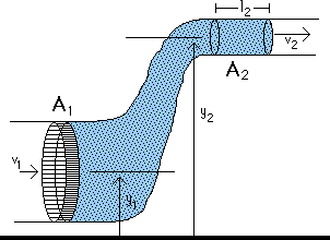 (1/2) m v12 + P1 A1 l1 + m g y1 = (1/2) m v22 + P2 A2 l2 + m g y2