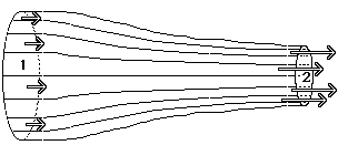 A 1 v1 = A 2 v2 we know that the fluid must be moving slower at position 1 where the cross section A1 is larger and it must be moving faster at position 2 where cross section A2 is smaller. That is, the fluid must accelerate as is moves from position 1 to position 2. That means the pressure on the fluid at position 1 must be greater than the pressure at position 2 in order to provide a net force to cause this acceleration. This is an example of Bernoulli's Principle that