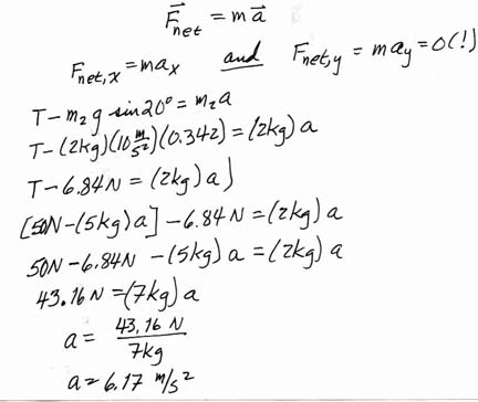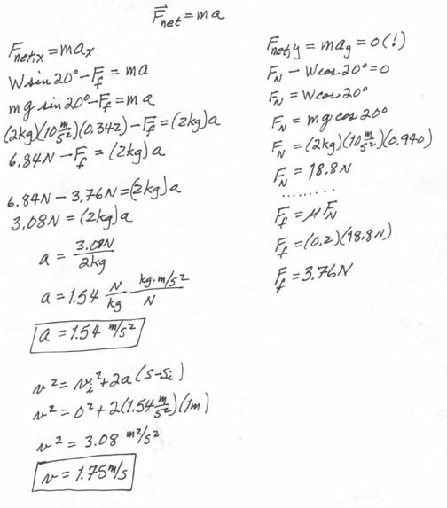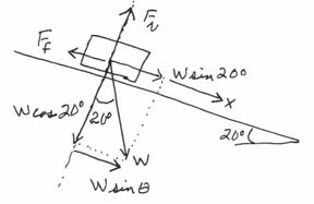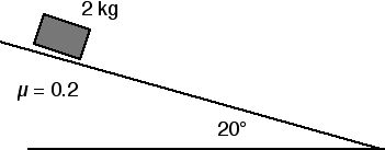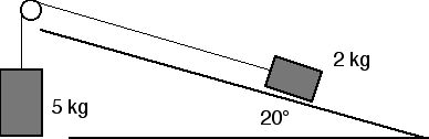 suspened from the other end of the string as shown in the sketch above. 5. A 2-kg block slides down a plane inclined at 20° from the horizontal