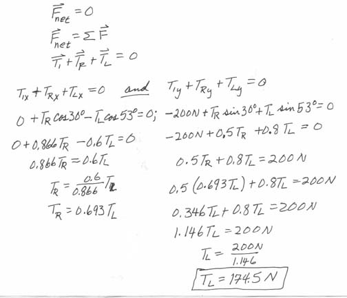 Find the tension in each of the three cords shown above.