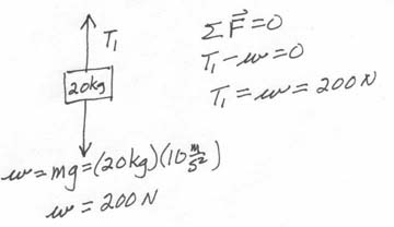 3. Consider a 20-kg mass suspended as shown: