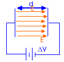 A prototype for a capacitor is a parallel-plate capacitor. We can establish a potential difference across the two plates by connecting them to a battery.