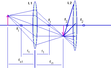 Lenses in Combination The image of the first lens becomes the object for the second lens. Human Eye Simple Magnifier Return to Ch 26, Optical Instruments (c) Doug Davis, 2003; all rights reserved
