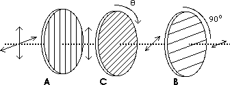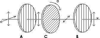 and B, as shown below. Another polarizing filter, C, is placed