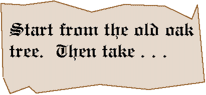 My favorite description of vector addition involves the pieces of an ancient treasure map. Suppose we find these fragments or pieces of an old treasure map. "the old oak tree" becomes the origin of our coordinate system.