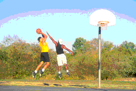 This observer is far enough away she has lost depth perception but can clearly see the ball rise and fall. She observes free fall, just as if the ball were thrown straight up. This is vertical motion with constant acceleration.