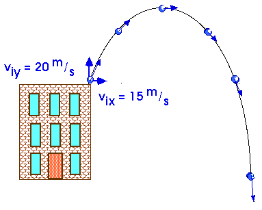 We throw the ball so it moves up with an initial vertical velocity of vyo = 20 m/s and so it moves horizontally with an initial horizontal velocity of vxo = 15 m/s.