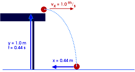 Another ExampleProjectile motion does not need to begin and end on a horizontal plane. We have already thrown a ball from the top of the Science Building and watched it hit the ground 25 m below. Now, let's throw a rock from the bottom of a cliff and ask where it lands on the ground above.