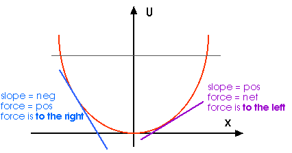 That is, the force associated with a Potential Energy is the negative derivative of that Potential Energy. If we make a graph of Potential Energy versus position, the force is the negative slope of the line.