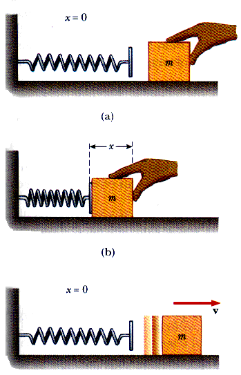 As the spring and mass are released, this amount of work done to the mass to change its kinetic energy from zero to a final value of