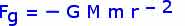 The minus sign is important. The minus sign means this is an attractive force, acting in the minus-r-direction. The force acts in the direction of decreasing distance r. We have often -- or usually -- just written the absolute value of the force Fg. But now we need to be more careful