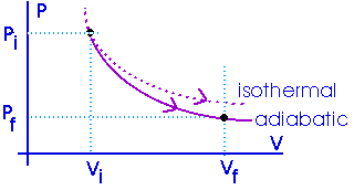 The amount of work done will be less than for an isothermal process between the same two volumes. Notice that an adiabat is steeper than an isotherm.