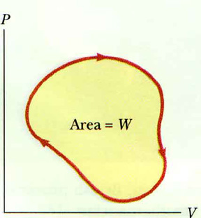 We can also represent this process on a PV diagram. The net work is the area enclosed by the closed curve that represents the cyclic process.