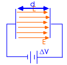 A prototype for a capacitor is a parallel-plate capacitor. We can establish a potential difference across the two plates by connecting them to a battery.