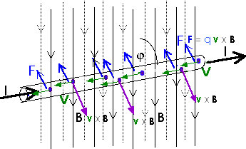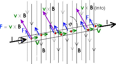 Notice that the direction of the Force is the same if we think of a current as positive charges moving in the direction of the current I or if we think of a current as negative charges moving in the direction opposite to that of the current I. Remember,