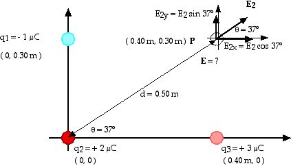 E1 = (9 x 109 N m2/C2) (1 x 10