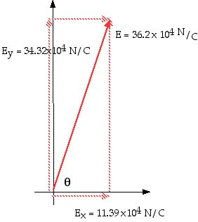 E = SQRT[(11.39)2 + (34.32)2] x 104 N/C