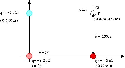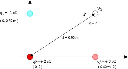 We found the distance d = 0.50 m from charge q2 to point P by using