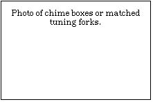Consider the two matched chime boxes. If you strike one of the chimes it will sound, causing the air to vibrate with the same frequency as the chime. Now touch that chime and stop it from sounding. You will hear that the other chime is now sounding-just because the air around it was vibrating at its resonance frequency!