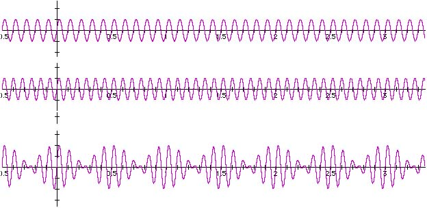 If two violins play the note A and one is correctly tuned to 440 Hz but the other is slightly low at 437 Hz, beats of 3 Hz will be heard. That is, the resulting sound of these two violins playing an A will waver or oscillate three times a second. This resulting annoying sound means the two violins are out of tune. As the lower violinist tightens the A-string and brings it up to, say, 439 Hz, the beat frequency will change to only one Hz. As the A-string is tightened more and that violin, too, approaches the correct 440 Hz, the beat frequency will become slower and slower and finally disappear as the two violins are correctly tuned. Thus, beat frequencies-or their elimination-are often used to tune musical instruments.