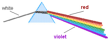 This spreading of the light into various colors is called a spectrum. The variation of index of refraction (or speed of light) with wavelength is called dispersion. Multiple internal reflections inside a piece of glass, such as a crystal or a pretty goblet or candle holder, allow the differences in angle between the red and violet ends of the spectrum to compound so the exiting spectrum will be spread out even more. This means that as you see little parts of the spectrum coming through one facet, you will see light of a single color. A jeweler may describe these bright, colored lights as "fire" because it is pretty. Diamonds, with their larger index of refraction will have more internal reflections. Diamonds also have a very great dispersion. These two characteristics, and the way a diamond is cut, combine to increase this effect and give a diamond great "fire" and beauty.