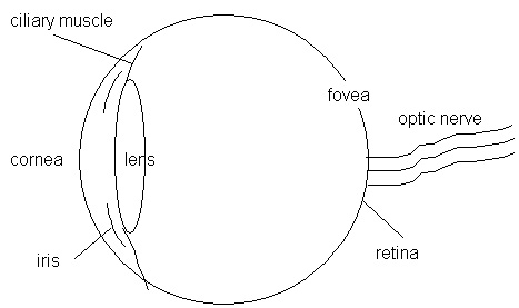 Where the optic nerve attaches to the retina there are no rods or cones. This means that each eye has a small blind spot. Normally we are not even aware of this because when an image is not seen by one eye because of its blind spot an image will be clearly seen by the other eye. However, it is easy to demonstrate this blind spot with Figure 17.16. Shut your left eye, hold your book at arm's length, and look directly at the o but be aware of the x. Now slowly bring the book closer to you, still looking directly at the o. At some distance the x will disappear, its image will pass over the blind spot of your right eye. To demonstrate the blind spot in your left eye, close your right eye and look directly at the x but be aware of the o. Vary the distance of the book from your eye and you will notice the o disappears when its image passes over the blind spot on the retina of your left eye.