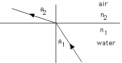 toward the smooth surface of the water (n = 1.33) with an angle of