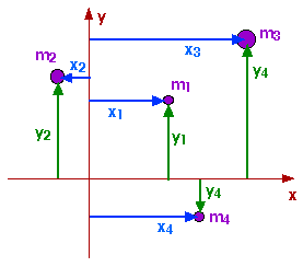 where M is the total mass. For individual, discrete masses we could write