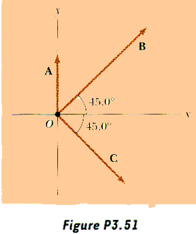 3.51 Three vectors are oriented as shown in Figure P3.51, where |A| = A = 20.0 units, |B| = B = 40.0 units, and |C| = c = 30.0 units.