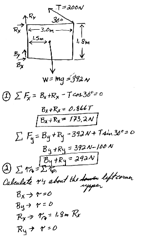 What does this negative sign mean? When I guessed that Ry pointed up, I guessed wrong! The forces are such -- and they are located such -- that the hinge exerts a downward force so Ry points down and that is shown by the negative value we calculate for Ry.
