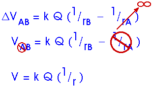 where we have taken the reference point rA to be infinity and have replaced rB with just r, the distance from the point charge Q.