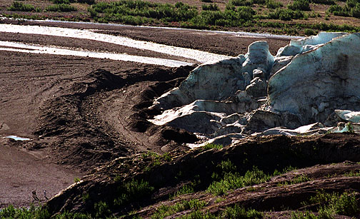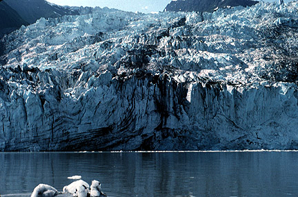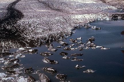 The margin of Bear Glacier discharges into a lake. Because of the low