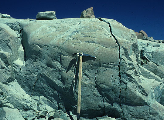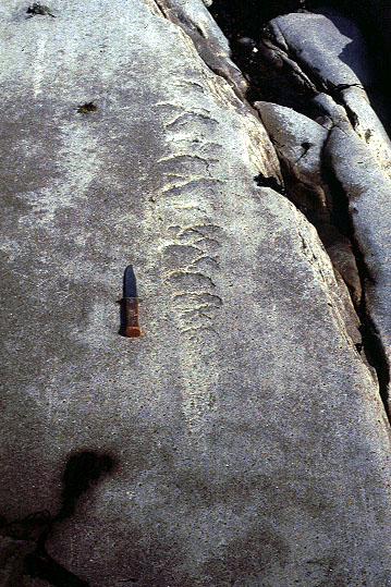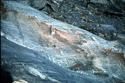 Striated Graywacke, Yale Glacier, AK 1997. Nice parallel striations.