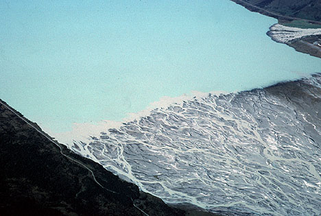 Delta, Lake Pukaki, New Zealand. The extreme limit of the outwash