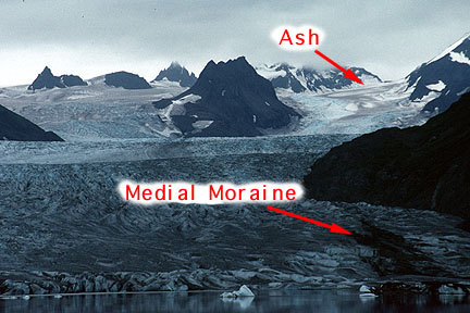 of glacier are ash cover.