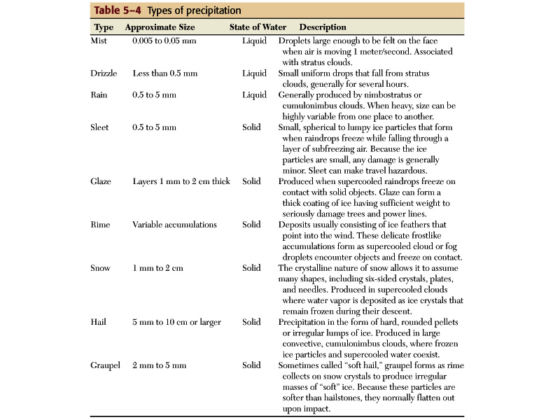 This is about 100 times larger than a CCN and 100 times smaller than a typical rain drop.Precipitation